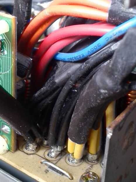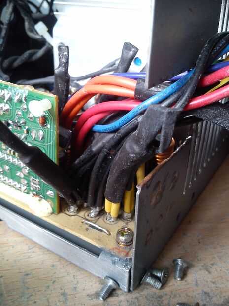 Una vez más este es bastante sencillo. Probablemente debe comenzar tirando de los LEDs en sus agujeros. Poner el interruptor de palanca a través y apriete la tuerca, he usado un interruptor SPDT. Luego inserte los terminales de conexión y apriete sus tuercas, no los tengo en la foto como que no habían llegado todavía. Theres no mucho más que puede decirse sobre la inserción del componente, para que te pasemos a preparando la fuente de alimentación. En primer lugar, usted querrá agarrar la dremel con un disco de corte que une. Necesitamos esto para hacer el cable de apertura un poco más amplio. Cuando tu hacer esto usted quiere asegurarse de que no está cortando a través de nada importante. Una vez que tengas que hacer nos podemos cortar de los conectores. Luego agrupamos los cables por colores. Sólo necesitamos 2 cables por color. Así que cortamos todos pero 2 de cada color excepto el negro, necesitamos 5 negro (2 para los LEDs) y 1 para el interruptor Ahora podemos cortar los cables a la longitud que queramos, no cortar a corto. Puede cubrir los cables sin usar con termocontraíbles o cinta aislante.