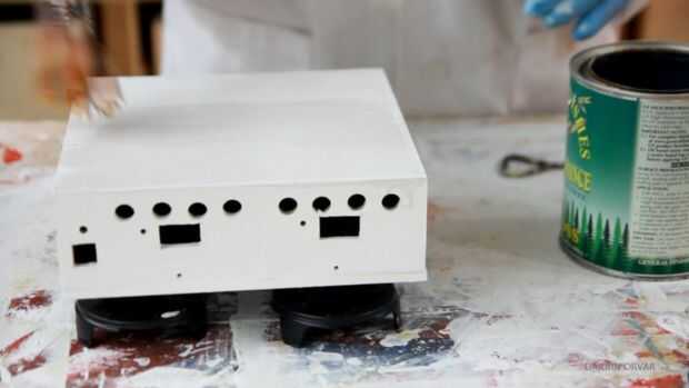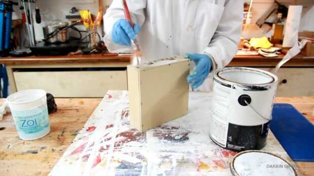 Decidí pintar este cuadro blanco para algunos el contraste, y sólo estoy usando pintura blanca básica barata aquí. Para pintar el interior de esos pequeños orificios estoy usando un cepillo pequeño. Luego una vez seca la pintura me puse dos capas de poliuretano a base de agua que es agradable ya que no añade un tono amarillo y se seca rápidamente, y por supuesto añade alguna protección adicional.