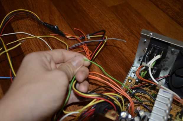 Recoja y separe los cables de color. Separe los cables negro, rojos, amarillos y naranja. Soldar los cables entre sí por el color pero separe 1 alambre negro del resto. También separar el cable verde ya que necesitará más adelante. El resto de los cables no son necesarios y pueden cortar o acortar. Recuerde colocar tubos termocontraíbles sobre los extremos cortados de los cables no utilizados para evitar cortocircuitos.