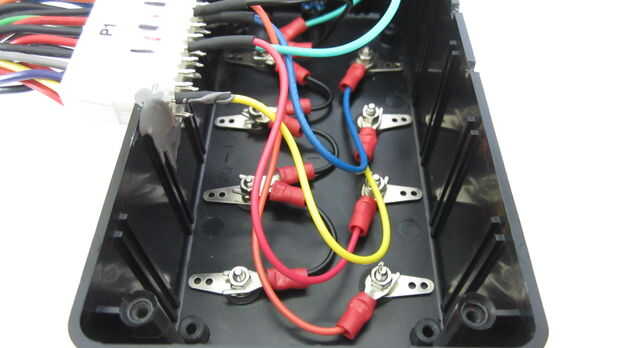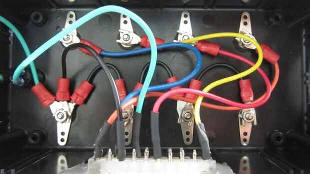 Conecté el resto de los cables en orden según su tensión ascendente. En el extremo izquierdo, conecté el 3.3V cable (naranja). Luego conecté el cable de 5V (rojo), el amarillo del cable de 12V, + y los - 12V (azul).