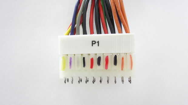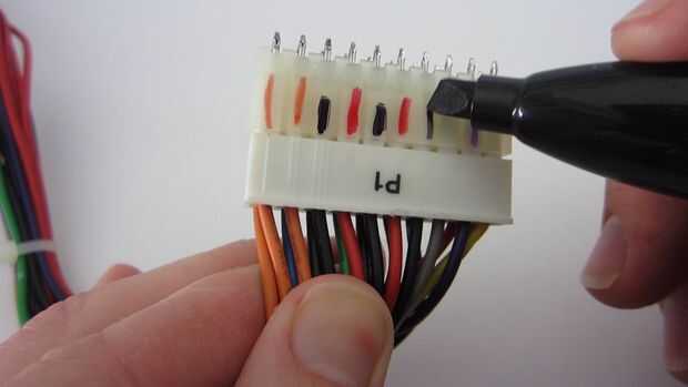 Para hacer las conexiones fáciles de identificar, solía marcadores de colores código de colores de cada ranura en el conector de 20 pines.