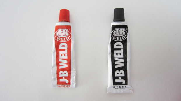 Para sujetar el conector principal en su lugar utilicé 2 parte J-B Weld. Este compuesto viene en dos partes. Exprima una cantidad igual de cada tubo. Luego mezclarlos juntos bien. Aplique la mezcla todo el conector. Luego lo deje reposar durante la noche completamente curar.