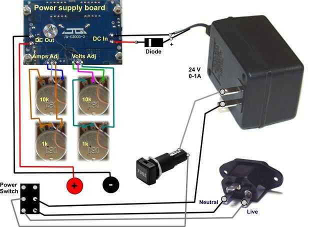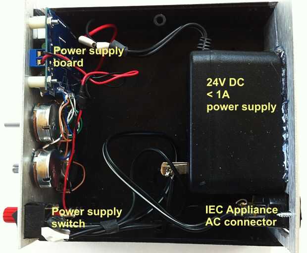 Conecte todo temporalmente en el cuadro de chasis. Poner un fusible de 2A en el soporte de fusibles, asegúrese de que el interruptor de encendido está apagado y enchufe en la AC. Encienda el interruptor de encendido, la pantalla deberá encenderse con una tensión. Girar el potenciómetro para asegurarse de que el voltaje cambia.