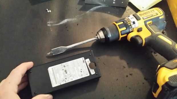 Finalmente, perfore un agujero donde se alimentan los cables a la fuente de alimentación a través.