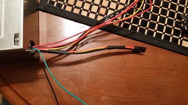 Necesitaba cinco tierra (negro), una 12V (amarillo), un 3, 3V (naranja), tres 5V (rojo), la fuente de encendido (verde) y un extra de cada uno.