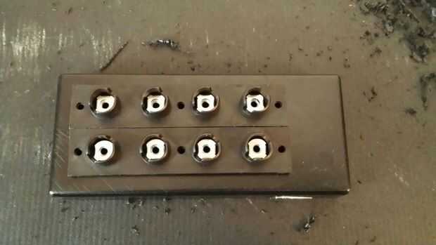 Perforar todos los agujeros para los conectores y que encajen en su lugar. Puedes pegar o atorníllelos en su lugar si son como la mía. Realmente derritió las clavijas en la parte posterior de las tomas de los agujeros en el ladrillo.
