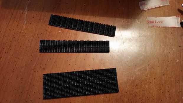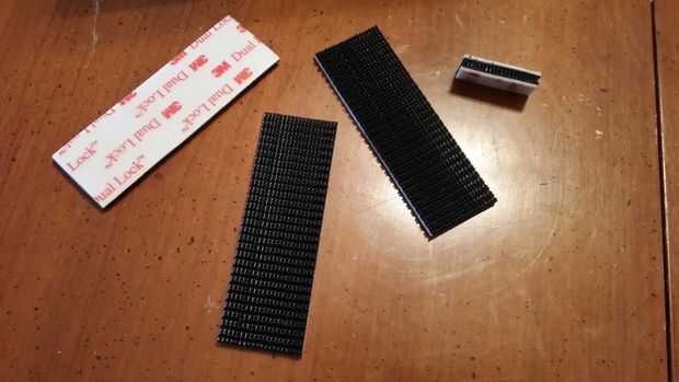 Sostiene juntas las dos mitades del ladrillo, tomar las tiras del Velcro de la misma longitud que los últimos y péguelos sobre las corte para unir todo.