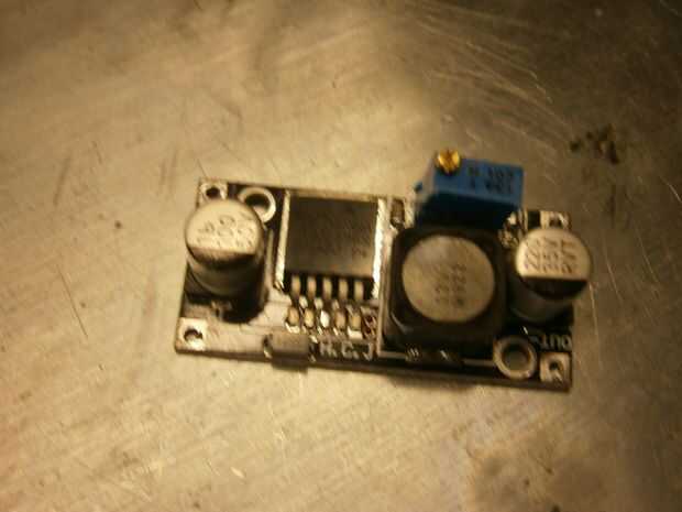 - Un 30-32v adaptador de corriente. (Mina es rescatado de una impresora antigua) -Un convertidor de DC-DC buck. (1$ en ebay) -Un voltímetro de panel LED. (2$ en ebay) -Un resorte audio terminal. (0.40$) -Un potenciómetro, el mismo valor que del convertidor, el mío es de 10K (0.60$)