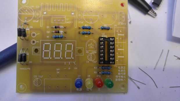 Resistencias son también plana y baja, así que son lo siguiente. Hay seis resistencias y no importa que van en camino. Uso de las líneas de colores o el multímetro para ponerlos en el lugar correcto. Les de la soldadura y corte las patas.