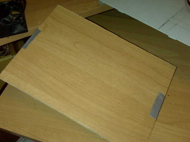 Como se mencionó en el paso anterior, usé el tablero trasero desde mi escritorio de esquina para hacer el panel. Porque es esencialmente cartón firme, era bastante fácil de manejar. Se puede cortar con un cúter o cuchilla de otros. Sin embargo dado que este material es débil en la naturaleza, realmente cortar dos paneles del mismo tamaño, cinta usada para mantenerlos juntos y después de poner todos los componentes en su lugar y montaje, era capaz de quitar la cinta y se sostuvo juntos su propio