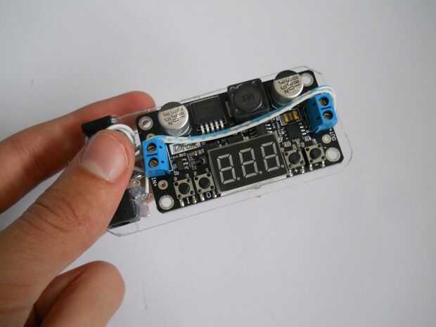 Ahora estás cerca terminar este proyecto, simplemente péguelos en una hoja de plástico al igual que yo. Bueno, usted puede hacer un caso mejor, pero no es necesario. Yo quería hacer este gadget portátil, esto es muy importante para mí. Cuando estoy trabajando con Arduino a veces necesito una fuente de alimentación pequeño y portátil.