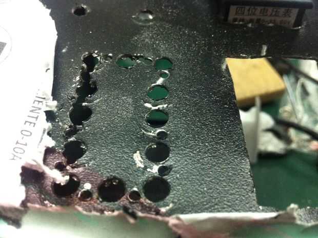 Tenemos que taladrar la caja, en mi caso esto fue probablemente el paso más difícil ya que estaba usando una muy grande y gruesa caja metálica