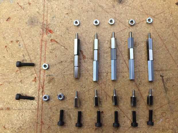 - 5 M3x38mm * hexagonal separador de hombres y mujeres... excepto en la parte superior principal del módulo (con conector de CA) donde se necesitan 4. (1 se sustituye por el enfrentamiento de 35mm mencionado anteriormente).