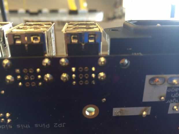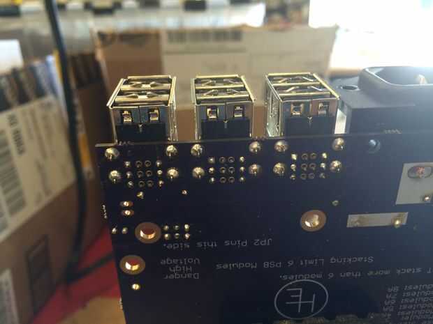 Use una buena cantidad de soldadura en las fichas grandes ya que es la conexión mecánica para sujetar los componentes en su lugar. Ser más juiciosa en soldar los pernos eléctricos. También, técnicamente, sólo los pernos fuera necesitan soldar. Aunque existen almohadillas y con seguridad puede soldar los pines interiores, las pastillas no están conectadas a ningún rastro, vierte u otras pastillas. Por fuera, me refiero a las dos filas de 3 pernos eléctricos más cercanas a las pestañas mecánicas. (Ver fotos para detalles. Tenga en cuenta que en las fotos, solo las patas del exterior y las lengüetas mecánicas se sueldan.
