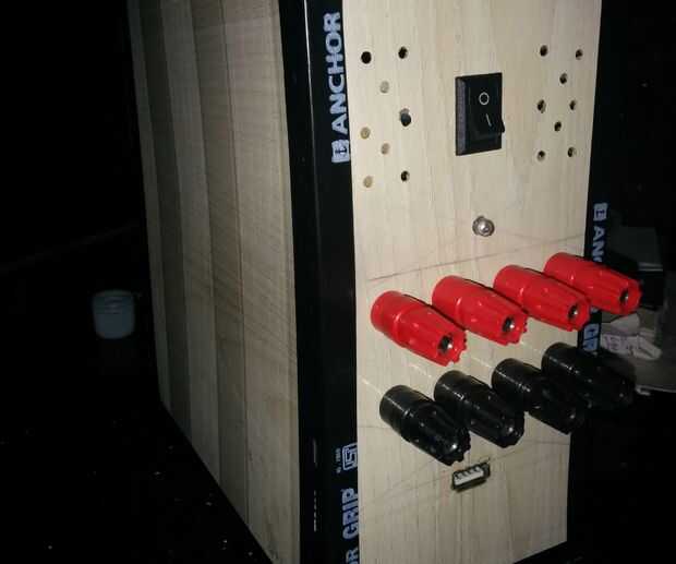 montar la caja, aquí he enmascarado las esquinas del cuadro todo con cinta eléctrica para que sea fuerte. Conecte la fuente de alimentación a la red eléctrica y su fuente de alimentación multipropósito está listo para usar!!!