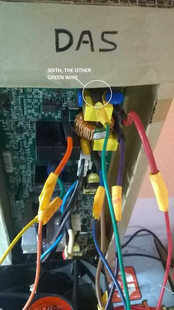 Séptimo, el último, conecte el cable negro a la izquierda del segundo alambre verde, justo por encima el cable naranja.