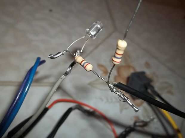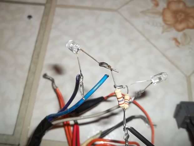 Lo primero primero es soldadura en el cable verde hacia el terminal negativo del interruptor. Seguimiento el diagrama para el resto del conjunto de soldadura. Comencé por soldadura de las resistencias primero y luego los Leds. Este es un proceso fácil pero delicado. La soldadura en los cables morados y gris si quieres el soporte por y encendido de luces. Lamentablemente me olvidé de tomar una foto de mí en estos cables de soldadura.