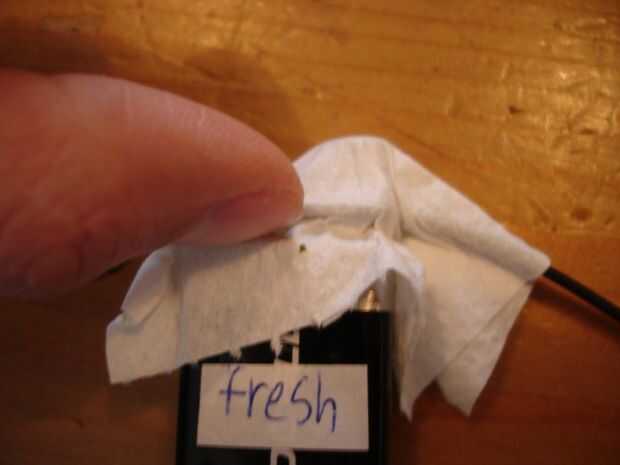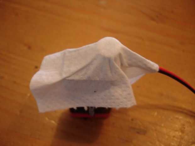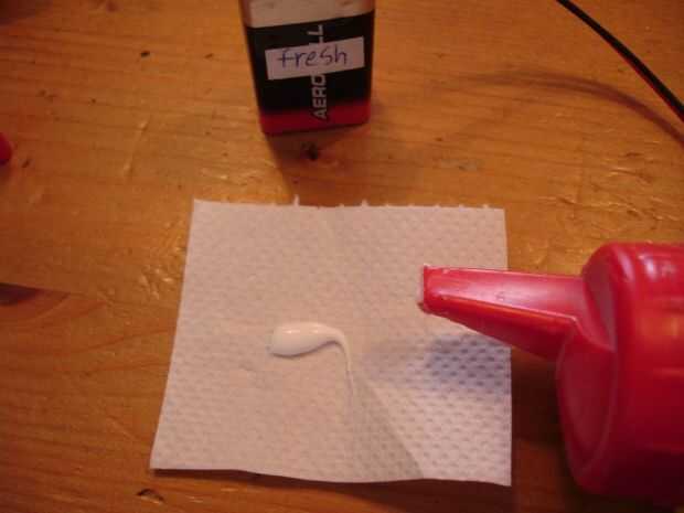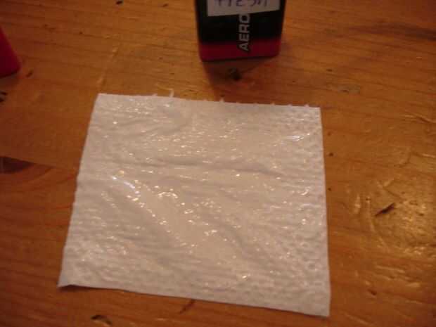 Recortar un pequeño cuadrado de papel higiénico. Debe encajar en el conector. Quieres un poco sobresalga en la parte inferior. Aplique pegamento a la Plaza y borrón de transferencia hacia fuera.