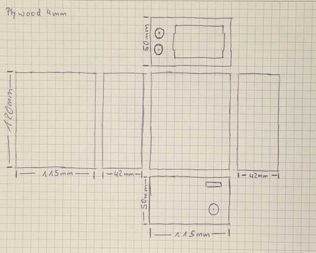 Mi caso está hecha de contrachapado de 4 mm, elijo esta porque es fácil de usar y no necesita ninguna herramienta especial. Las dimensiones en el maravilloso plan pintadas son de madera contrachapada de 4 mm si utiliza otros materiales que usted tiene que asegurarse de que también cambiar las otras dimensiones no encajaría, o a construir su propio diseño.