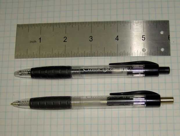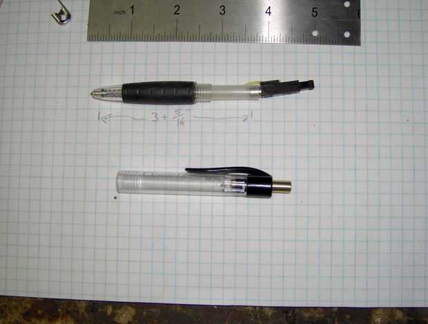 La tercera imagen muestra la pluma de Piezo terminado, lado a lado, con la culata original Inc(r) Gel(r) clásico bolígrafo, y parecen similares. Que fue uno de mis objetivos: para hacer esta cosa realmente look como una bola de stock punto de pluma.