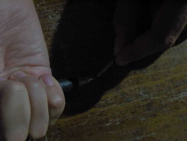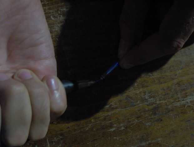 El pulso eléctrico producido por la pluma de piezoeléctrico puede iluminar brevemente varios tubos de gas llenadas.  Las imágenes de este paso me muestran zapping un tubo del xenón del strobe, como los de un flash de la cámara. Cuando este tubo gas obtiene pulsada parece que hay pequeños relámpagos dentro del tubo.