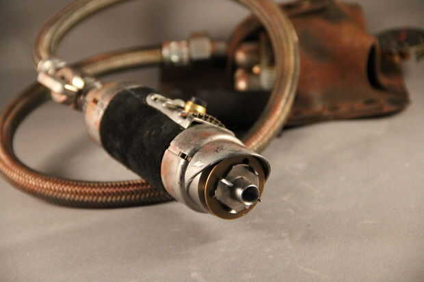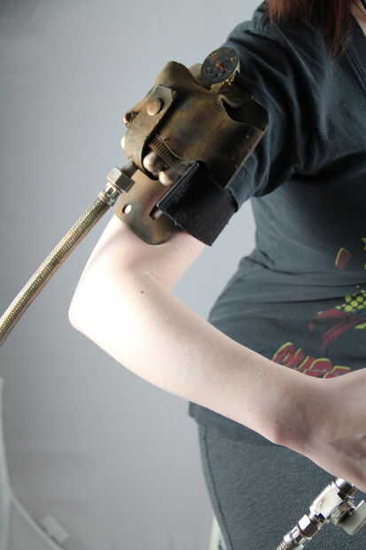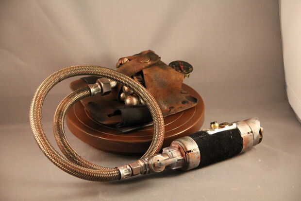 que quería hacer un sable de luz única. algo que aún no todo el mundo conoce. Tengo mi inspiración de la lectura de algunos de los viejos libros de star wars. Hay conversaciones de sables de luz que se hicieron originalmente con fuentes de alimentación independiente generalmente describir algo como un paquete energía trasera fuente o scuba tanque tipo de cosas... Pensé que sería kool para ver una fuente de energía más pequeña que se encuentra en el brazo en lugar de la parte posterior. Creo que la estética de todo trabajo realmente bien. quería que todo se sienta más viejo y usado, como ha visto unos pocos años de la batalla de la mano de un experimentado jedi. sostiene en el brazo muy bien y es realmente bastante cómodo de sostener. Aquí hay algunas fotos de la espada final, así como un brazo de los modelos. la construcción entera tomó unas semanas de búsqueda de las piezas adecuadas. piezas de metal en su mayoría de otras cosas. el peso total de este sable es de alrededor de 2 libras. ese peso realmente hace el saber auténtico.