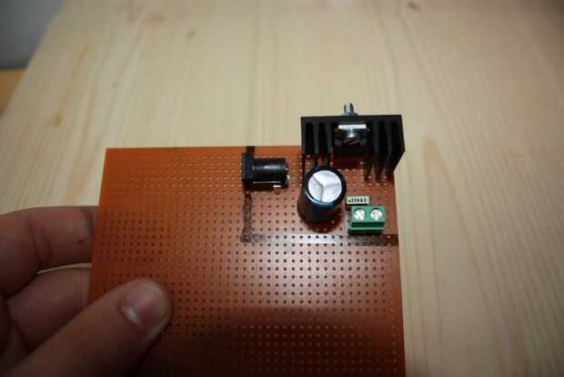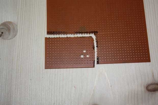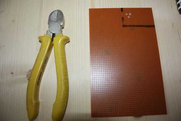 1er paso: colocar todos los elementos en el PWB. Luego marque el tamaño del PCB que va a utilizar y que corte la pieza marcada. Después de eso, ajuste los orificios que elementos pueden caber en.
