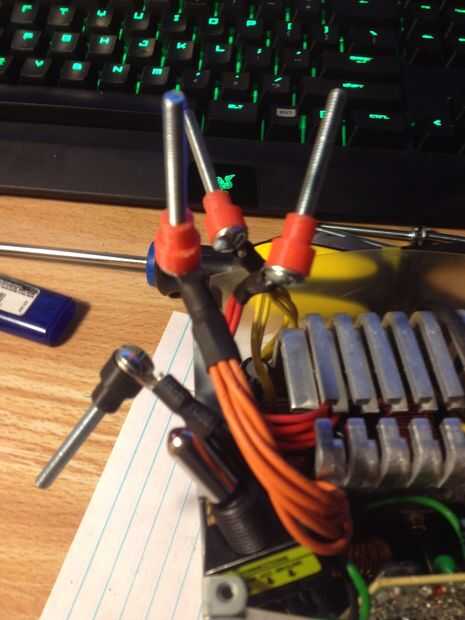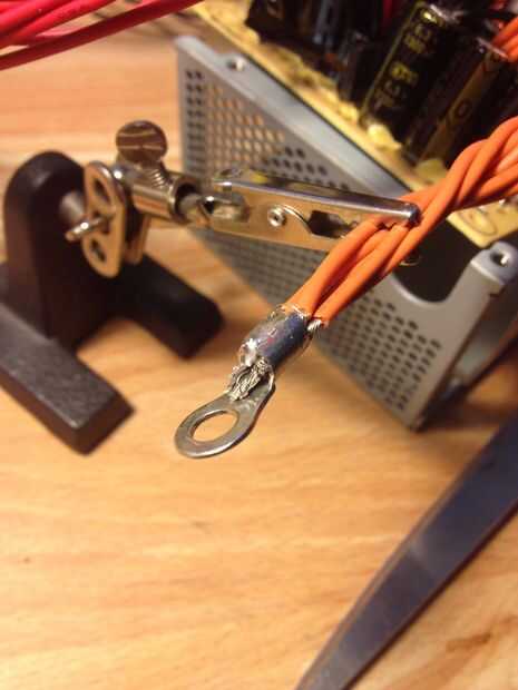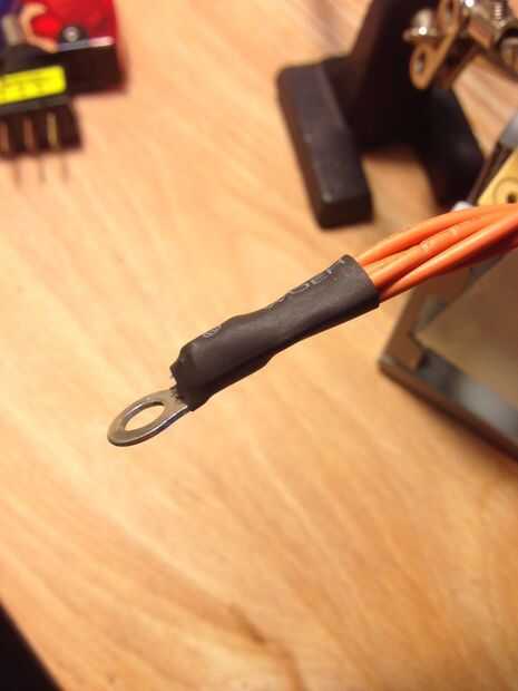 Los seis cables de cada color entonces soldados en un terminal de anillo y luego se cubre con tubería del encogimiento del calor.