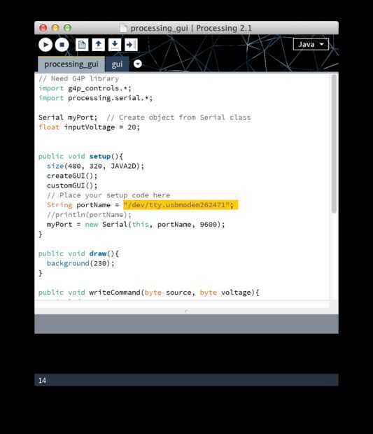 5. Establecer la variable 'portName' al puerto serie de Arduino, como en el paso anterior, como una cadena (ver cuarta imagen)