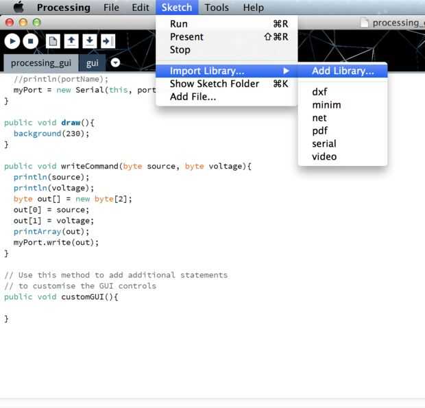 2. Descargar y descomprimir el código de GUI, processing_gui.zip (adjunto abajo)