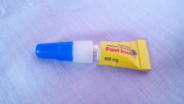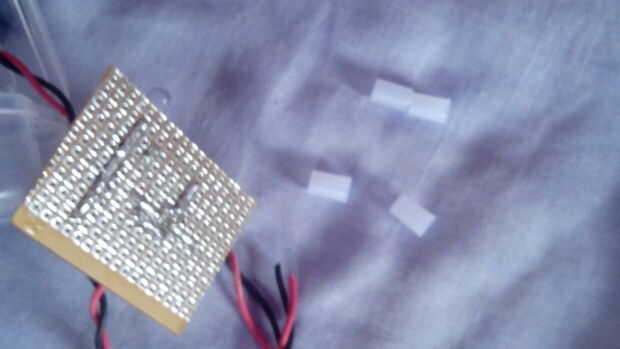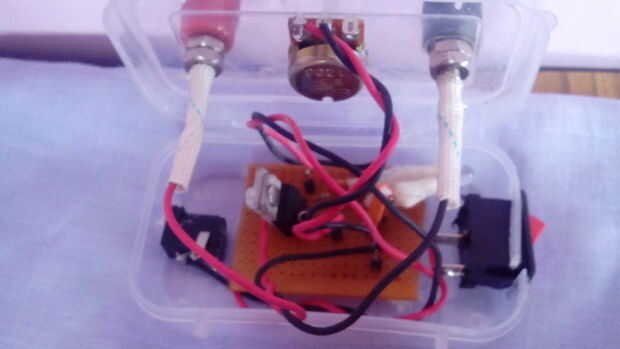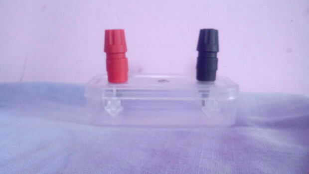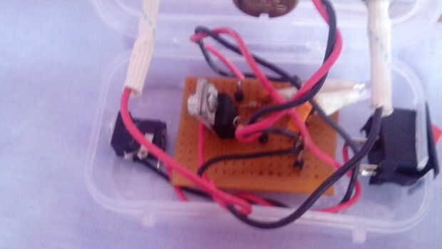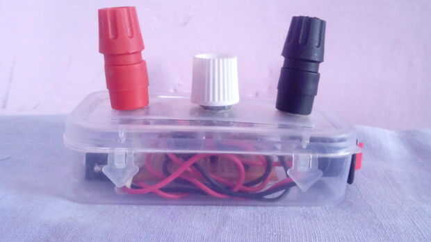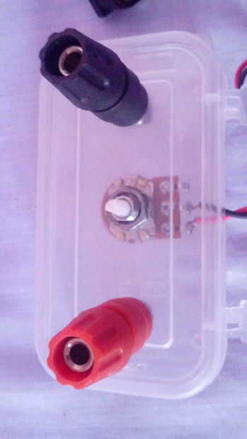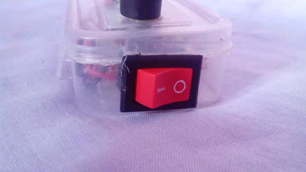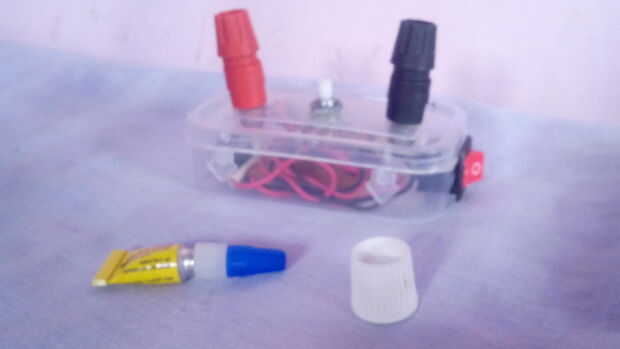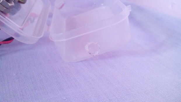 Cerca de la caja de plástico, pegar la tapa de la pasta de diente sobre el metro de potentio con la ayuda de pegamento.