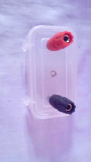Inserte las perillas de salida positivo y negativo encima de la caja y apretado el tornillo fuertemente.