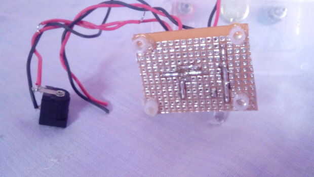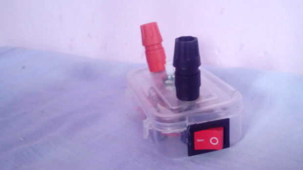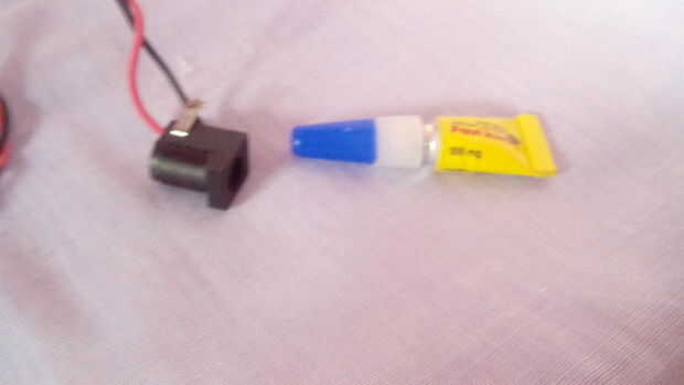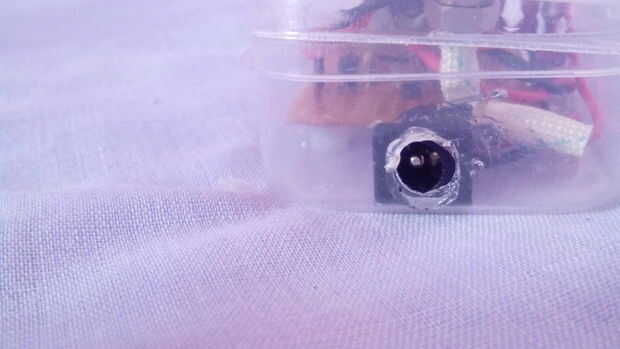 Coloque el puerto de entrada de DC, el interruptor y el tablero del PWB en la caja de plástico con la ayuda de pegamento.
