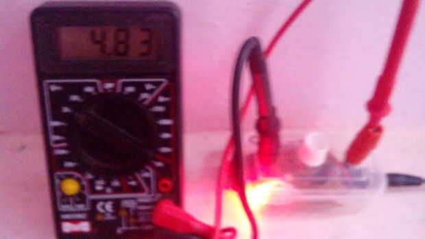 Conecte un multímetro simple con las perillas de salida de suministro de energía en modo de la C.C. (en el rango de 20 v) como un dispositivo de visualización.