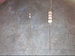 Se puede ver la resistencia grande 2 vatios en comparación con la resistencia de 1/4 watt. No es muy común para mí. Tuve que hacer un viaje especial al comprar éste.