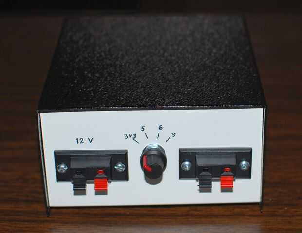 Se trata de una batería, auta contenida, fuente de alimentación conmutable entre 3.3, 5, 6 y 9 voltios. Utiliza un regulador de voltaje variable LM317 y un conmutador para seleccionar la tensión. Doce voltios están disponibles directamente desde el ocho doble A baterías.