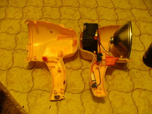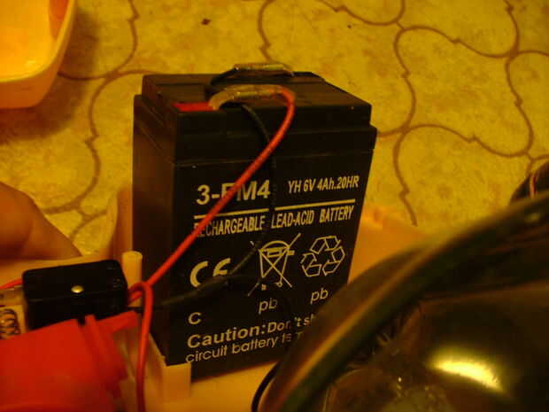 Lookie lo que está dentro, una batería de AH 6v4.5, 6v 25W H3 bombilla, el interruptor del gatillo y un bonito espejo.