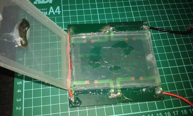 Necesitamos una base donde nos podemos fijar las células. Yo uso la tapa de tarjeta flashdisk.