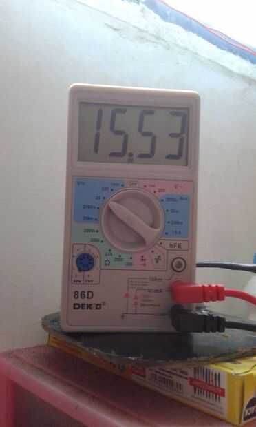 Nuestro trabajo se realiza aquí. A continuación, vamos a instalar las células mediante otro imán. Y obtenemos nuestros 15,5 voltios que pueden ser utilizados para nuestros propios propósitos.