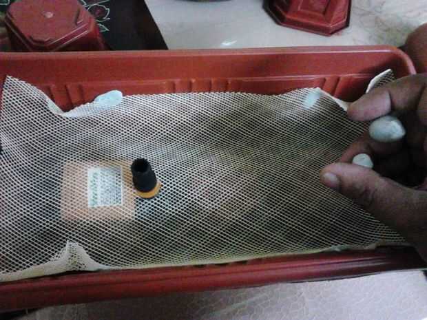 Ahora fije la bomba cuando sea necesario. Usé un pedazo de masilla del tamaño de guisante y presiona la bomba. También poner las macetas más pequeñas para la ayuda.