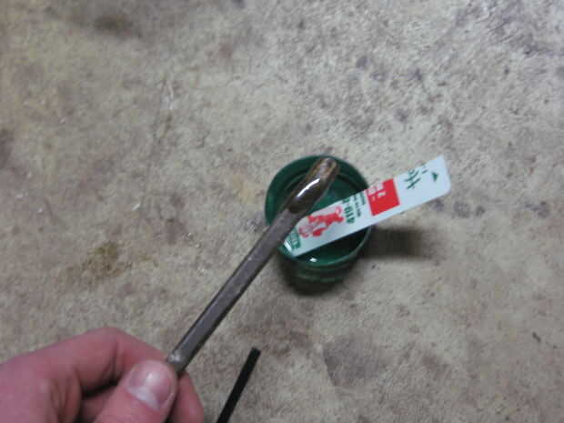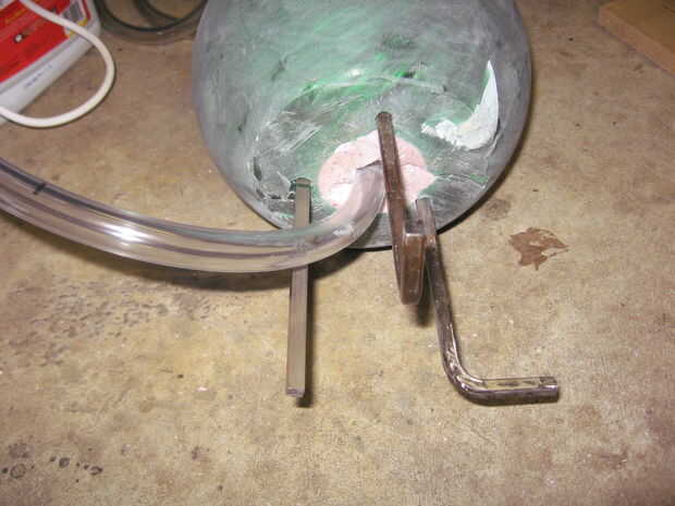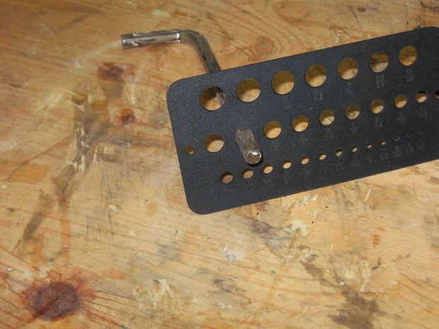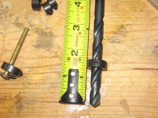 Con su taladro configurar ahora necesita marcar donde usted quiere las piernas para ir. Elegí un patrón trangle alrededor del agujero central de la tubería. Elija cualquier configuración es más estable para su proyecto. Una vez que sus posiciones están marcadas Taladre los orificios. No empuje a duro o el stop bit podría deslizarse y vas un poco demasiado profundo. Una vez que los agujeros se perforan limpiar el polvo y la basura hacia fuera y pruebe la colocación de las piernas. Usted quiere asegurarse de que un ajuste apretado y lo suficientemente profundos.