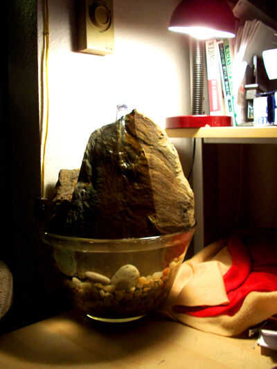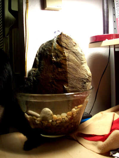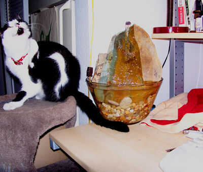 Ya que es mi gato que ama el agua corriente, y ella pasa mucho de su tiempo en o cerca de mi escritorio de la computadora, decidí hacer una fuente de mesa que ella y yo podríamos disfrutar.