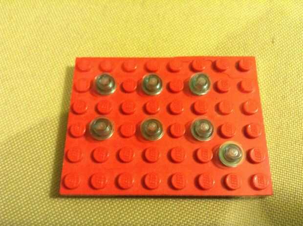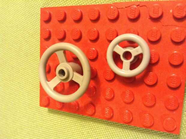 Necesitarás: • 7 1 x 1 ronda placas (preferiblemente azules). • Una rueda de 3 x 3 (volante). • Una rueda pequeña (también un volante). • Y un 1 x 1 x 4 barra de lego.