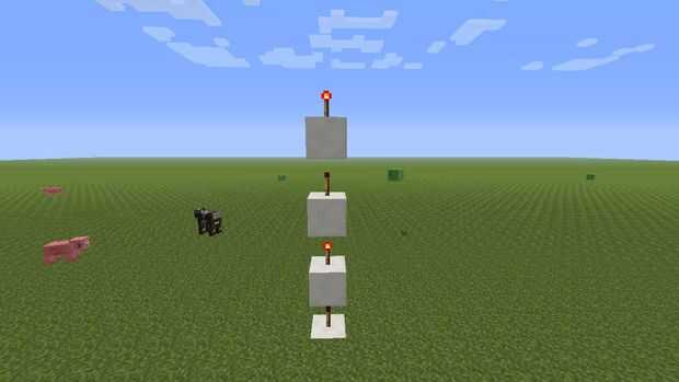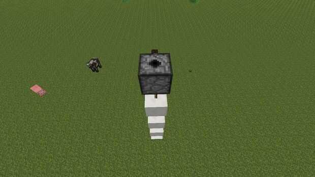 Ahora vuelve a donde colocaste la antorcha redstone Coloque un bloque sobre él entonces (después de las fotos) y una antorcha de redstone sobre él (debe apagarse la antorcha redstone) ahora (después de las fotos) colocar otro bloque y redstone torch en parte superior y luego repetición que paso dos veces más. Luego poner un dispensador hacia arriba encima de todo.
