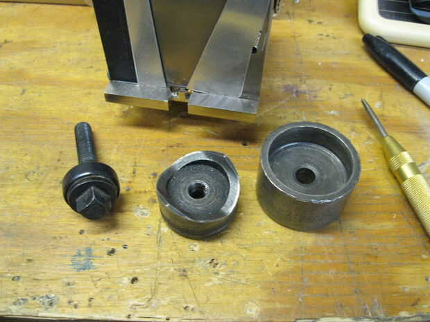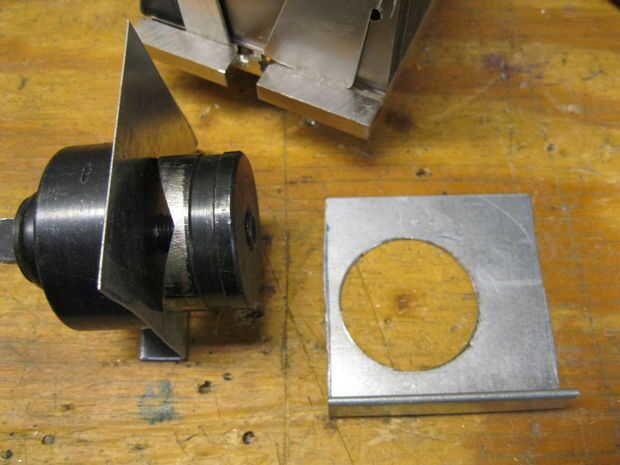 Originalmente iba a usar un serrucho para cortar el agujero de 1.5" hasta que me di cuenta era mi Serrucho para madera solamente. Suerte y me ha pasado a tener un panel de 1.5" punch. Así que taladró el poste de montaje agujeros grandes que bastante para la perforación del panel perno de diapositiva aunque luego perforada el orificio a 1.5". Cualquiera de los métodos habría funcionado igual. Desbarbar los bordes y agujeros.