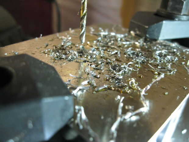 Carga un taladro de centro y usando el dibujo CAD y DRO localizar piloto del taladro de los agujeros en el disipador de calor.