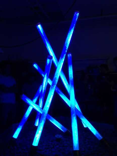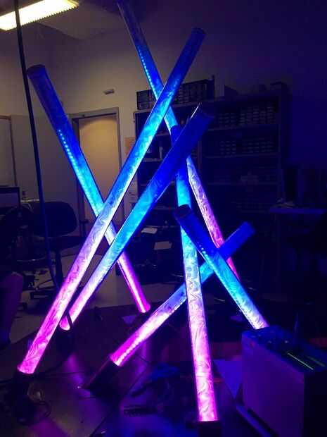 Somos una clase de estudiantes de Stanford que, impulsadas por nuestro deseo de sustituir las fuentes afectadas por la sequía en el campus, decidió crear una fuente electrónica de luz, en lugar de agua, como el medio principal.