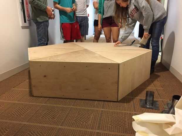Una vez que se crearon los 6 triángulos, tenemos organizado juntos en un hexágono, así que había un exterior sólido para la base pero el interior estaba abiertas a permitir cables y suministros a ser escondido dentro de la energía.