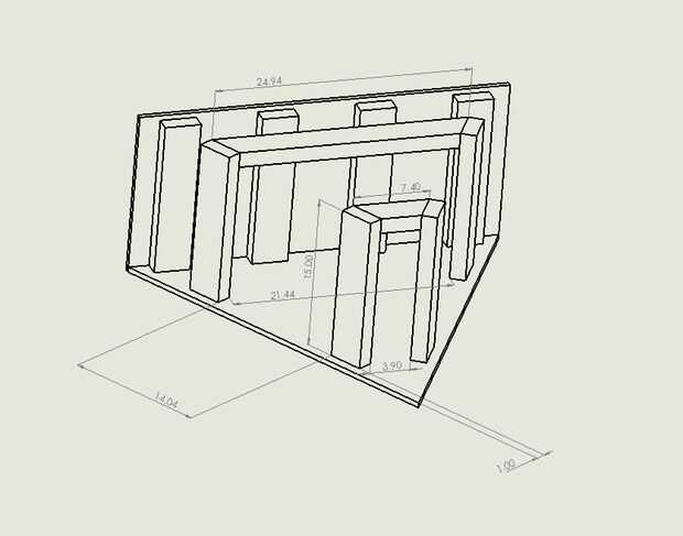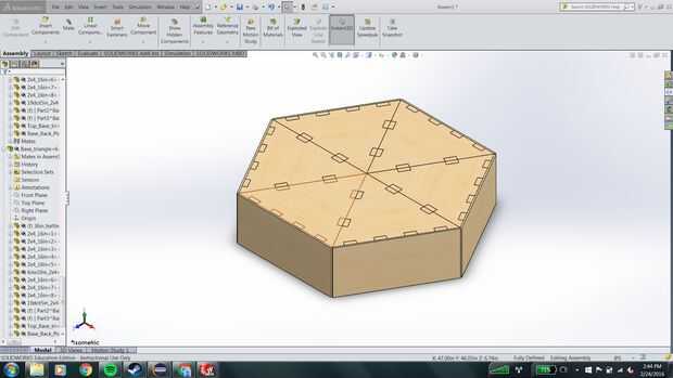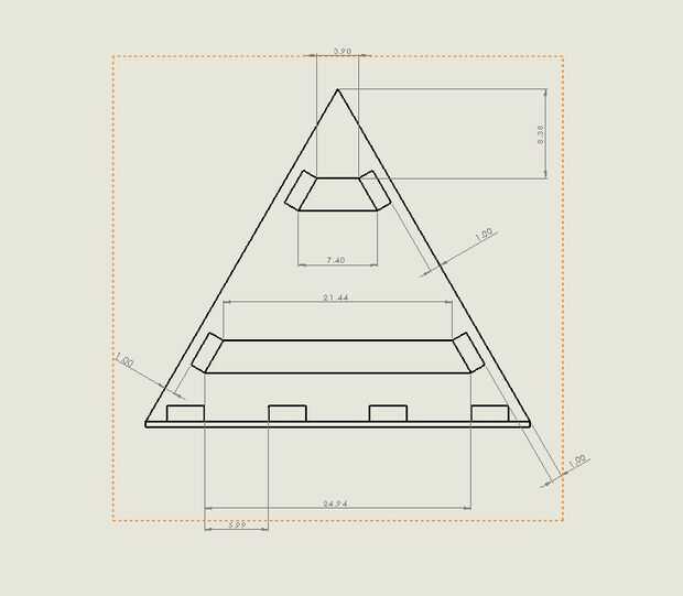 Para la parte inferior de la estructura, hicimos una base compartimentada compuesto por 6 triángulos para hacer la base de la móviles.