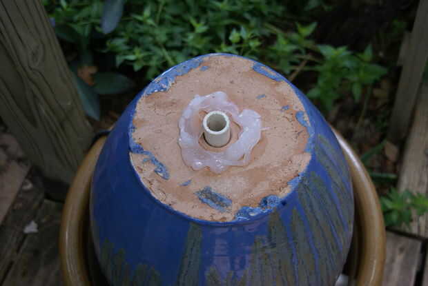 Aplique sellador a la parte superior para que el siguiente platillo quedará atado y el agua no fluirá hacia abajo el centro al lado de la tubería